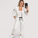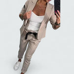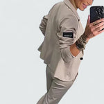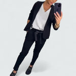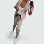 Tauchen Sie ein in mühelosen Stil mit diesem eleganten Blazer- und Jogging-Set. Der massgeschneiderte Blazer und die lässige Jogginghose sind die perfekte Wahl für Arbeitstage oder Wochenenden unterwegs.