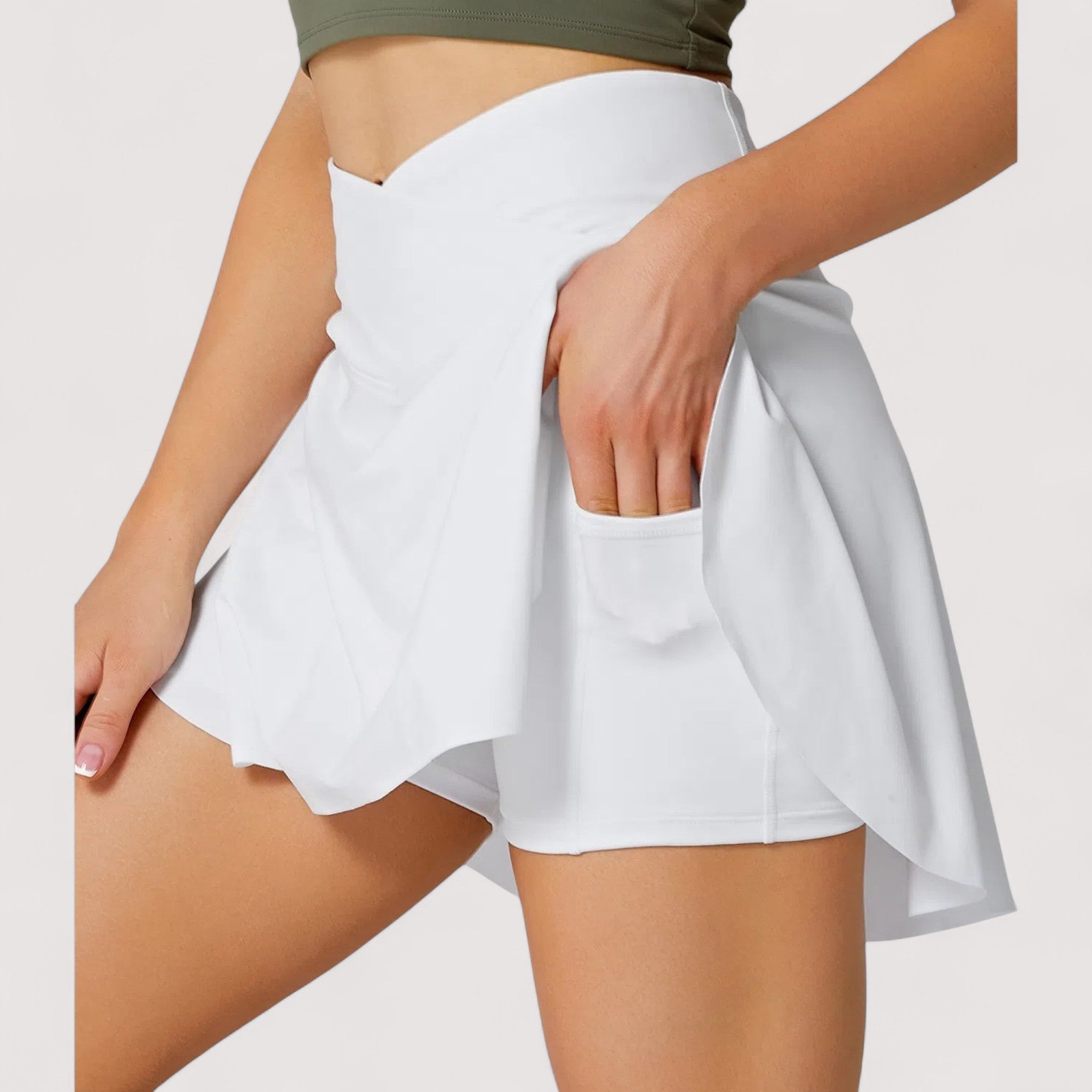Diese Rock-Shorts-Kombination bietet eine stilvolle Mischung aus praktischer Nutzbarkeit und Eleganz, perfekt für aktive Frauen, die Komfort, Leistung und Vielseitigkeit schätzen.