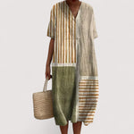 Umarmen Sie die entspannte Eleganz dieses Kleides mit fliessendem Schnitt und künstlerischem Muster. Es betont Ihre natürliche Schönheit, bietet mühelosen Komfort und Stil – ein essentielles Stück für einen kreativen Alltag.