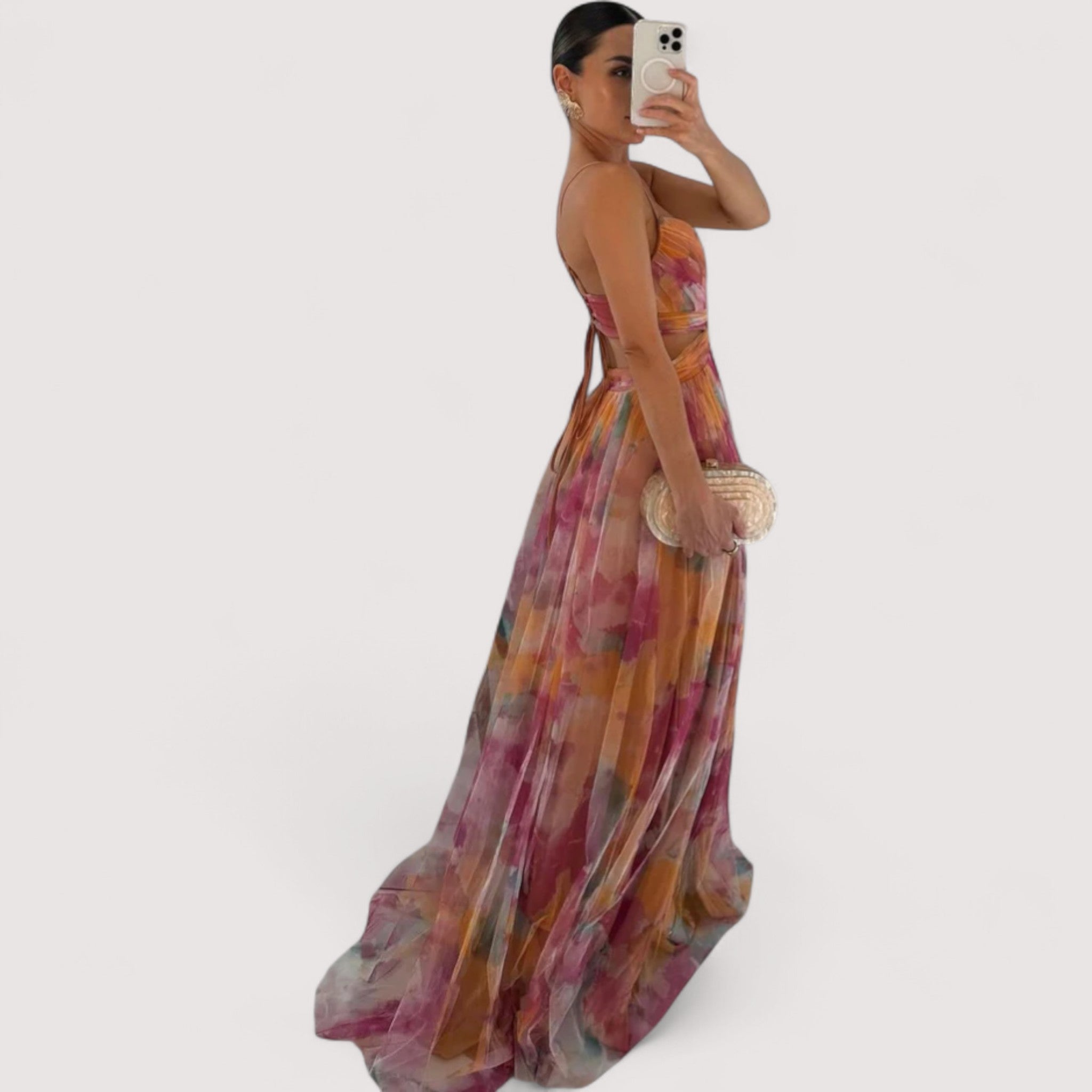 Ein exklusives Design in limitierter Auflage. Dieses Kleid vereint luftige Leichtigkeit mit luxuriöser Ausstrahlung – perfekt für besondere Anlässe oder als Blickfang der Saison.
