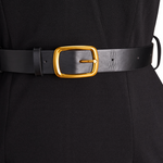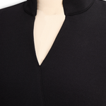 Nora | Verfeinertes Schwarzes Kleid mit Gürtel und Mandarin-Kragen